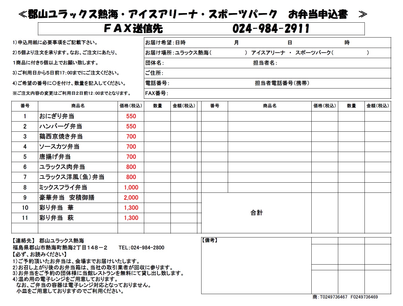 磐梯熱海アイスアリーナでは、大会やイベント利用の皆様にお弁当のご注文を承りいたします。
