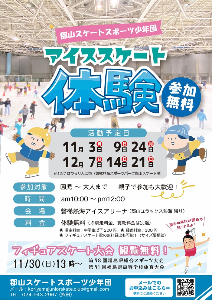 郡山スケートスポーツ少年団では「チャレンジする人・スタートしたい人」